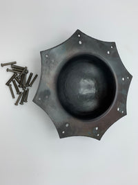 Mittelalterlicher Schildbuckel mit Zierkrempe aus 2 mm Kohlenstoffstahl – Inklusive Nieten